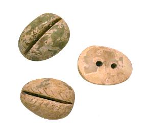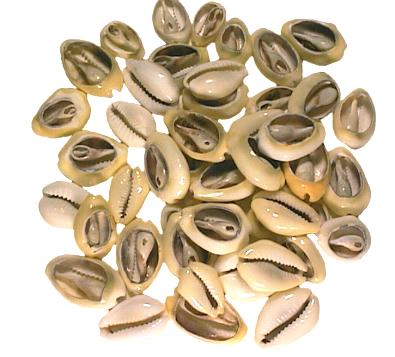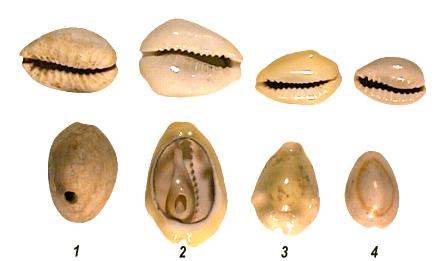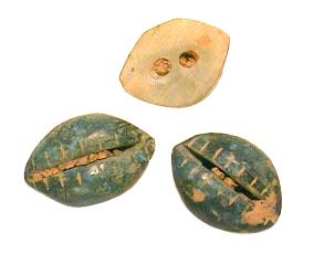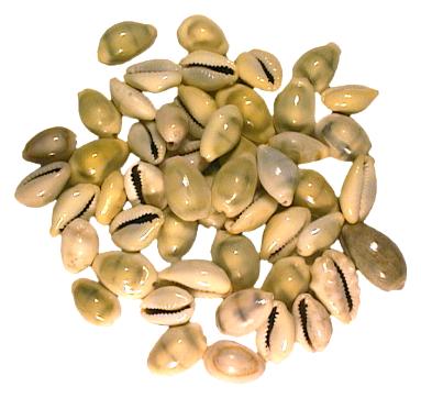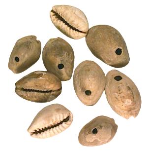 Prähistorische Kaurischnecken, ca. 3.000 Jahre alt. Fundort China. |