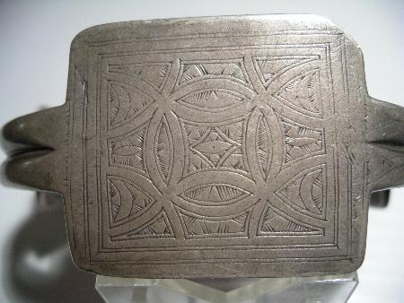 Old Tuareg solid silver bracelet with heart motive, inside heavy silver chloride patination. Outer diameter: 60 mm, inside ca. 54 mm. Weight: 28,3 g |
