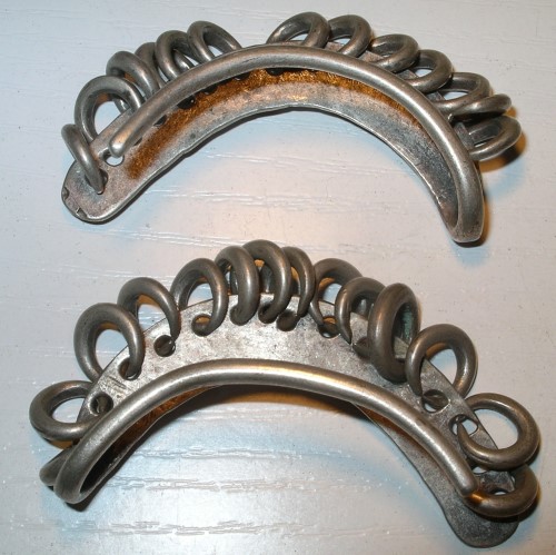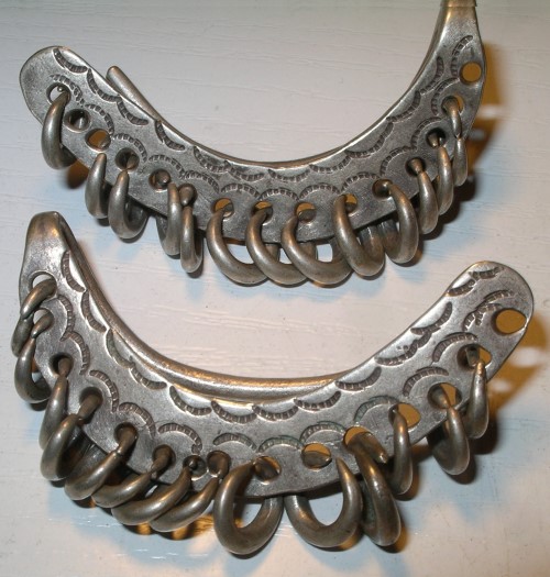 Typical Ullimeden Tuareg earrings, "tsabit" or "schizabatan" of silver. These earrings are a definite prosperity indicator for the person wearing them. Traditional payment. Picture Nr.1 Diameter ca. 53 mm Total Weight: 56,5 g Picture Nr.2 (smaller ones, good silver!) Diameter ca. 38 mm Total Weight: 34,0 g |