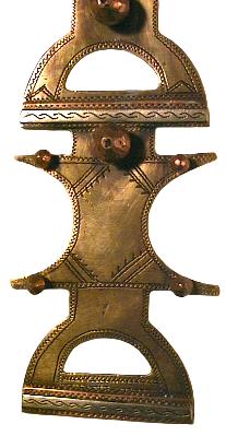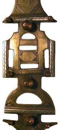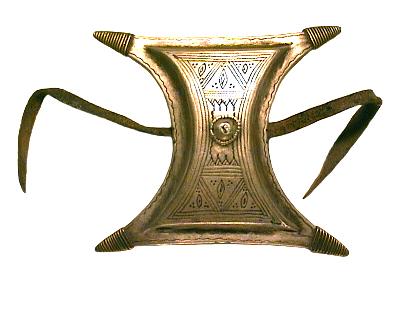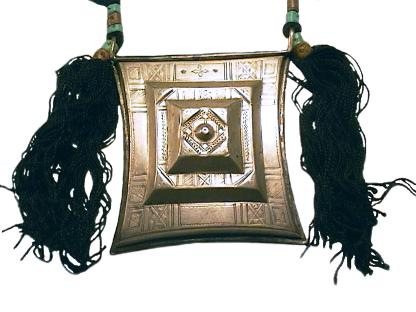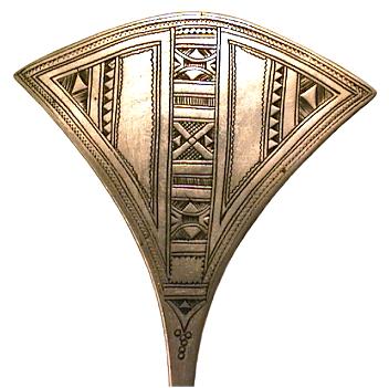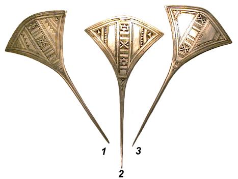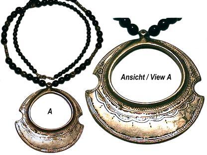 On the front beautifully decorated Tuareg hairpins of silver. Traditional payment. Dimensions (LxB): ca. 142x70 mm Weight: 20-24 g |