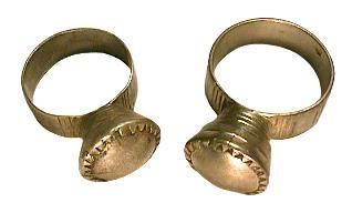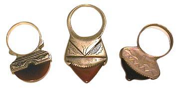 Jewellery rings "tisek", made of silver, are spread to all Tuareg tribes in most various types. They will be used as fingerring, hair ornament, pendants and even as toe rings. |