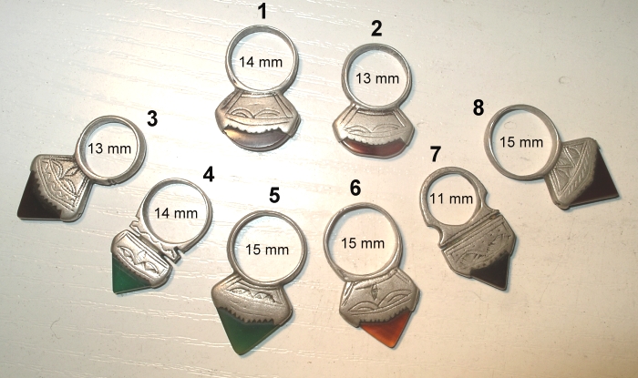 € 120.- each At interest, please, request detailed supply. lower picture, "tisek" Rings with "tanfouk" Item. 1- 8 € 75.- each |