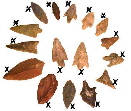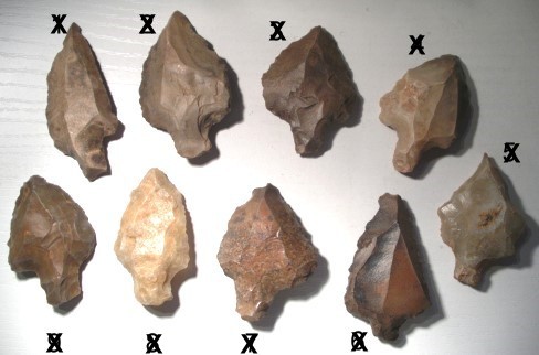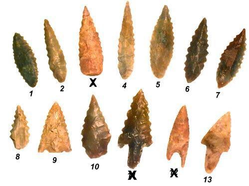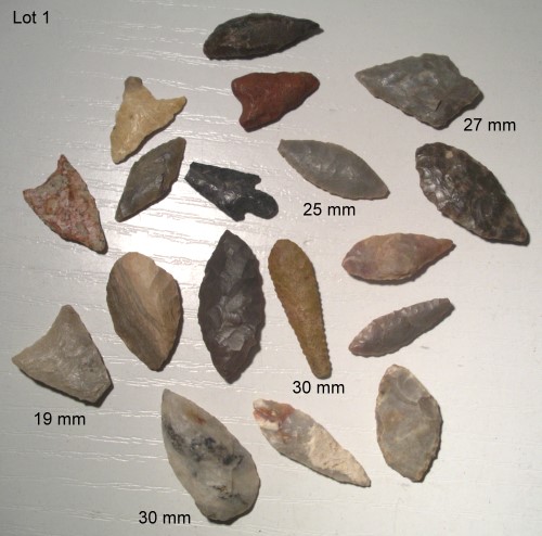 Pfeilspitzen und andere Artefakte aus Jaspis, Chalcedon und Karneol |