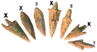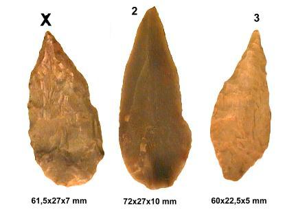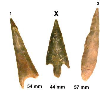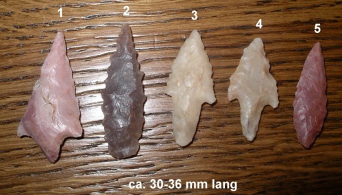 Pfeilspitzen aus Jaspis und Chalcedon Länge: von 30 bis 53 mm |