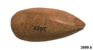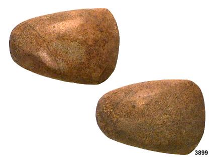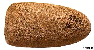Walzenbeil 1.3899 aus Granit, grünlich, hellbraun patiniert. Länge: 70 mm Gewicht: 168 g |