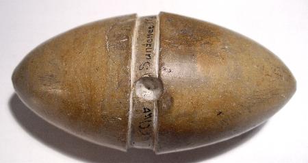 Originaler Indianer "Kriegskeulenkopf", hergestellt aus "Pipestone" (Catlinite), natürlich ausgehärteter Lehm. Aufschrift, 1889 u.Ztr. Dies war eine der typischen Waffen der Prärie - Indianer, z.B. den Sioux Stämmen, die sie auf ihren Pferden im Kampf Mann gegen Mann verwendeten. Schöne Patina, die eine Spitze zeigt Gebrauchsspuren. Beschriftung auf dem Artefakt: "1889, Sundanee. YYgo. Minnesota Pipe Stone, Sioux, War Club" Abmessungen: ca. 122x60 mm Gewicht: 491 g |