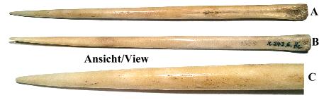 Knochenhaarnadel Qualität: G 10 Kulturperiode: MISSISSIPPIAN, 1100-600 B.P. Artefakt stammt aus dem Nachlass der Ex-Sammlung John Delime, Tennessee. Sammlung und Beschreibung John Delime im WHO´S WHO Nr.2 von 1968, abgebildet S.50 oben links. Abmessungen (L): 172 mm Gewicht: 8,2 g |