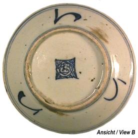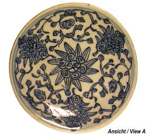 Kleine Schale der Qing Dynastie, vor 1870 u.Ztr., mit Monogramm des Benutzers, siehe Bildausschnitt. Durchmesser. 141 mm Gewicht: 212 g Vermerk: Es sind insgesamt 6 Stück mit unterschiedlichen Monogrammen der Benutzer lieferbar. |