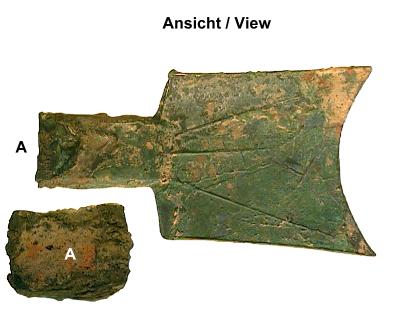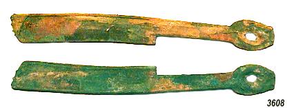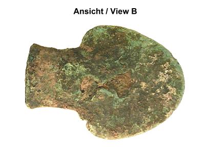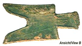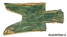 ASIEN: Bronzezeitliche Feldhacke ? (Axt) aus Bronze, ca. 1000 - 500 v.Cr. Abmessungen: ca. 91x2/12,5 mm Gewicht: 77,5 g |