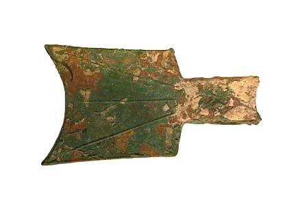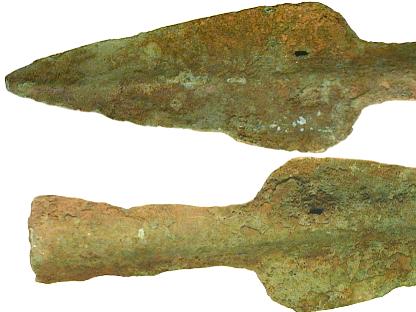Bronzezeitlicher Speer, Bronze, ca. 1000 - 500 v.Cr. Abmessungen: ca. 127x33x2,5/15,5 mm Gewicht: 50,9 g |