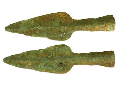 Grosser, bronzezeitlicher Speer aus Bronze, ca. 1000 - 500 v.Cr. Rituell gebogen! Abmessungen: ca. 420*x62x8/21 mm Gewicht: 552 g *gestreckte Länge Nur geklebt, alle Teile sind original, keine Ergänzungen! |
