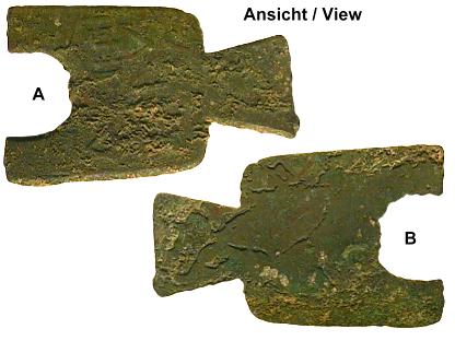 Spaten (Pu) -Münze aus Bronze, ca. Anfang 1. Jahrhundert nach Chr. Länge, 56 mm, Gewicht, ca. 15 g |