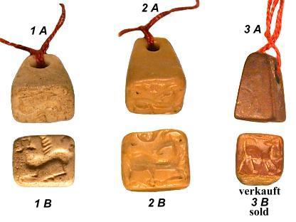Baktrische Steinstempel aus Afghanistan. Die Stempel stammen aus der persischen Zeit um 545 v. Chr. und sind aus Jaspis hergestellt. Nr. 1.) 16,5x14x11,5 mm Nr. 2.) 21x13x12 mm Nr. 3.) 16,5x10x10 mm |