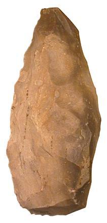 Neolithischer Kernstein aus Silex, Typ "livre de beurre" mit 1 Klingenbahn. Abmessungen (LxBxD): ca. 235x82x52 mm. Gewicht: 2300 g Alle Funddaten bekannt. |