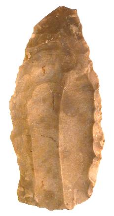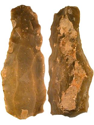 Neolithischer Kernstein aus Silex, Typ "livre de beurre" mit 2 Klingenbahnen. Diese Kernsteine dienten zur Produktion großer Klingen aus denen (Span-)Dolche und Messer hergestellt wurden. Abmessungen (LxBxD): ca. 330x148x105 mm Gewicht: ca: 5600 g! Alle Funddaten bekannt. |