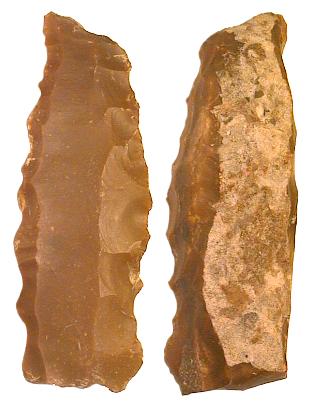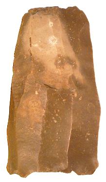 Klingenkernstein aus Silex, Typ "court et large" mit 2 (3) Klingenbahnen. Speziell für die Messerproduktion verwendet. Abmessungen (LxBxD): ca. 160x108x46 mm Gewicht: 885 g Alle Funddaten bekannt. |