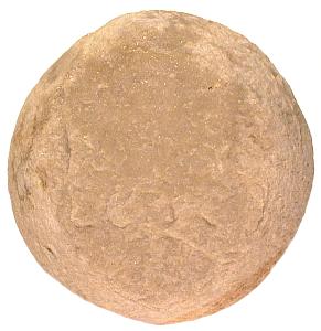 Kugelförmiger Klopf- oder Schlagstein aus Silex. Durchmesser: ca. 77 mm Gewicht: 518 g |