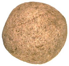 Kugelförmiger Klopf- oder Schlagstein aus Granit. Durchmesser: ca. 71 mm Gewicht: 455 g |