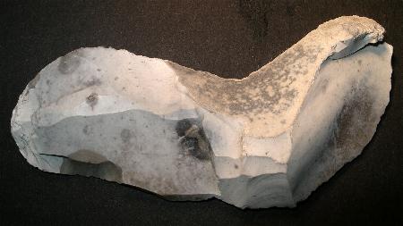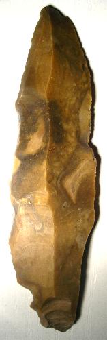 EUROPE: Knife made of a Silex Flake. Mesolithic, presumable older. Measurements (LxBxT): ca. 100x34x14 mm Weight: 53,6 g Complete History! |