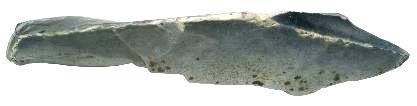 Nordic Spear Point, Mesolithic, presumable older, made of a Silex Flake. The shafting area can be recognized well. The point dates from an underwater find place, therefore a beautiful bluish patina! Measurements (LxBxT): ca. 105x37x21(12) mm Weight: 74,1 g Complete History! |