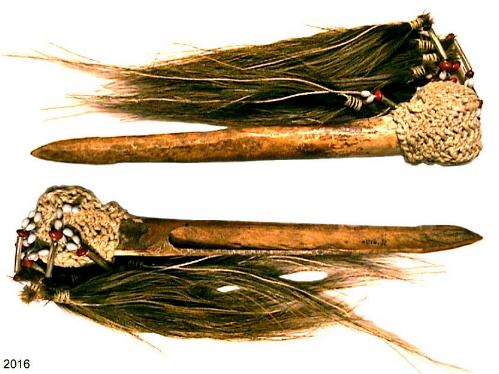 Asmat Knochendolch Nr.1.2016. Diese Knochendolche, verziert mit Kasuarfedern, wurden auch als Handels-und Zahlungsmittel verwendet. Lieferung mit Zertifikat und genauer Beschreibung der Herkunft. Gesamtlänge: 360 mm Gewicht: 207 g |