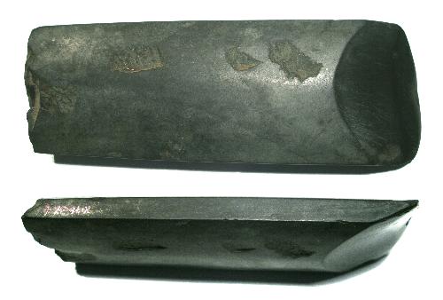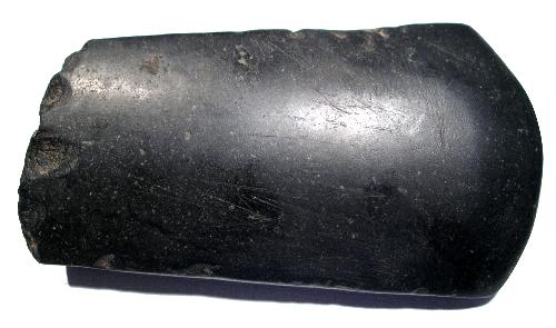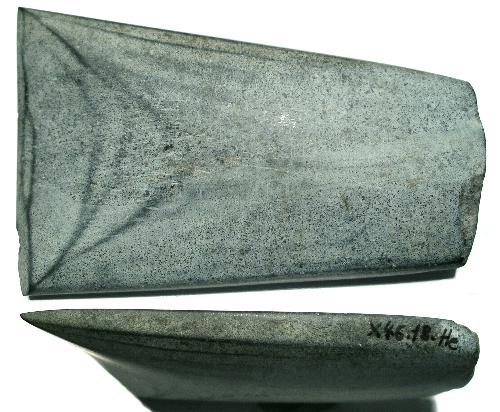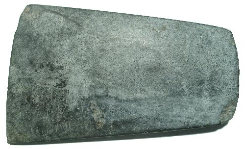 Neolithikum, Java. Allseitig geschliffene Steinbeilklinge mit Hohlschliff an der Schneide. Im Schäftungsbereich ist die Oberfläche der Stirnfläche ungeschliffen, die Bruchkante ist belassen. Abmessungen (LxBxD): 125x68x25 mm Gewicht: 404 g |